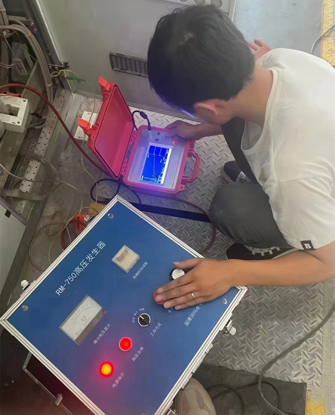 確定電纜全?后,??壓發(fā)?器多次打壓后查找近端有故障波形顯示的情況。?定點儀在故障端進(jìn)?定位。