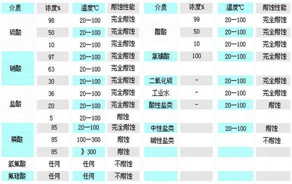 KPI膠泥可用于各種濃度的硫酸、鹽酸、硝酸、磷酸、鉻酸、次氯酸、氯磺酸、甲酸、草酸、醋酸等酸類,各類有機(jī)溶劑、各類酸性鹽類、氯氣、雙氧水等氧化性介質(zhì),以及上述各類介質(zhì)的混合物中。